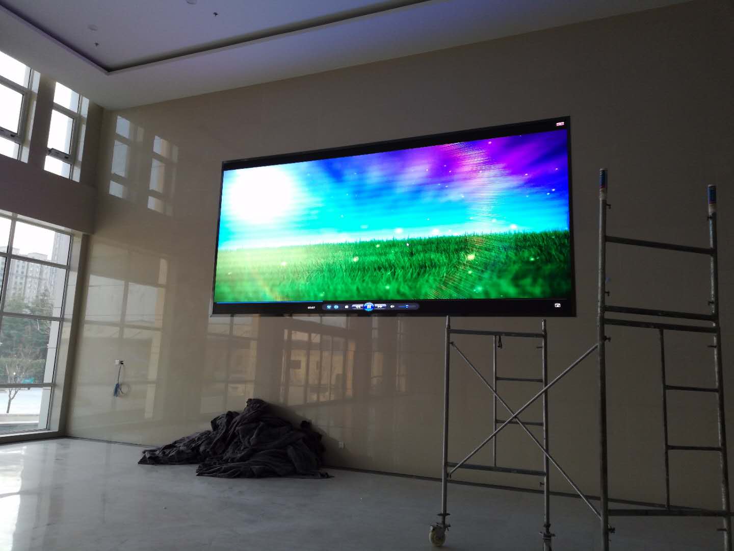 山東制藥公司海王醫(yī)藥室內P2.5全彩屏安裝調試完畢